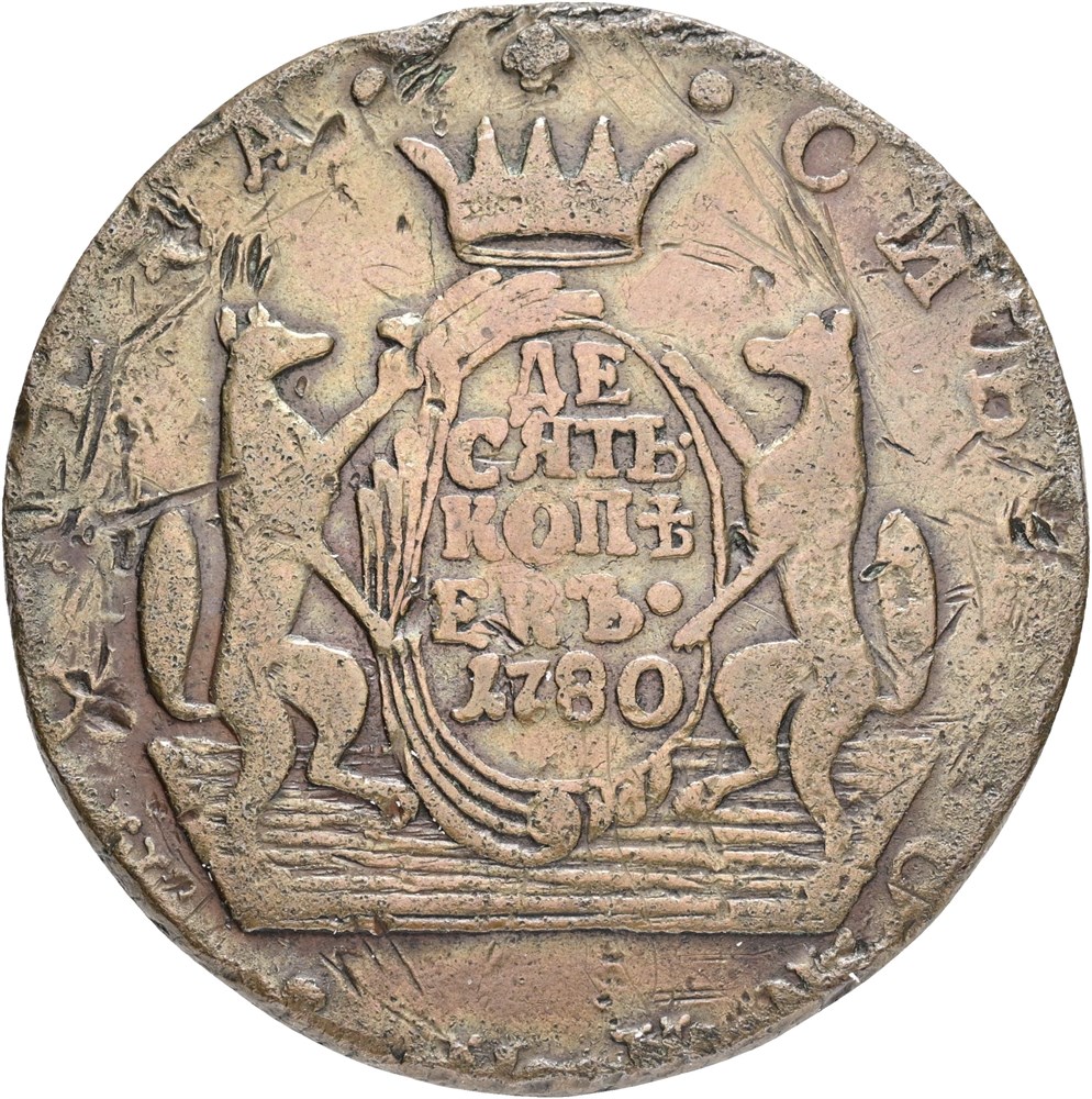 10 Kopecks 1780 KM, scratches.