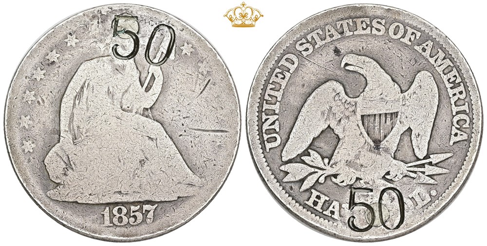 - Half Dollar 1857, marked "50" on both sides (16796808)
