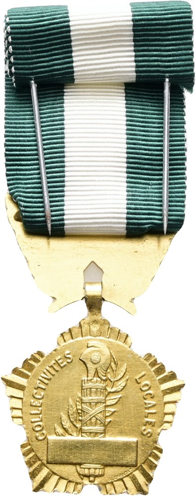 Departmental and municipal medal of honor, 'Médaille d'honneur départementale et communale', gilt Ae, 32x50 mm, with ribbon.