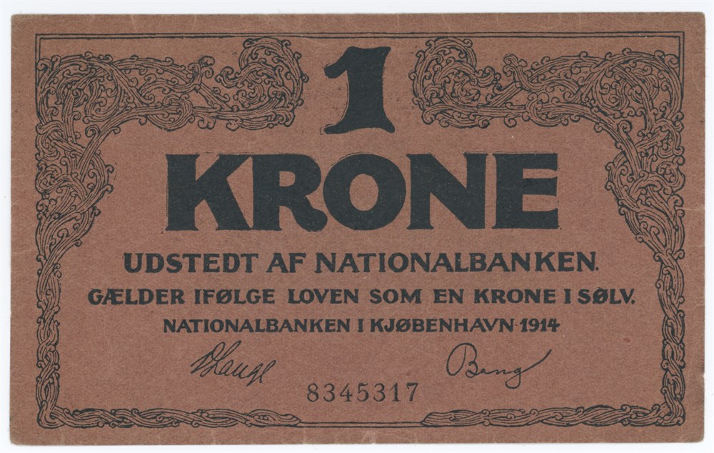 1 krone 1914, nr. 8345317, V. Lange / Bang, Falk