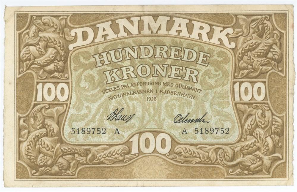 - 100 kroner 1928 A, nr. 5189752, V. Lange / Odewahn (16805904)