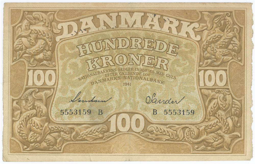 - 100 kroner 1941 B, nr. 5553159, Svendsen / Sander (16806045)