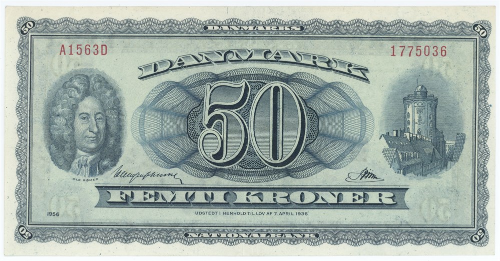 50 kroner 1956 A1, nr. 1775036, Haugen Johansen / Riim