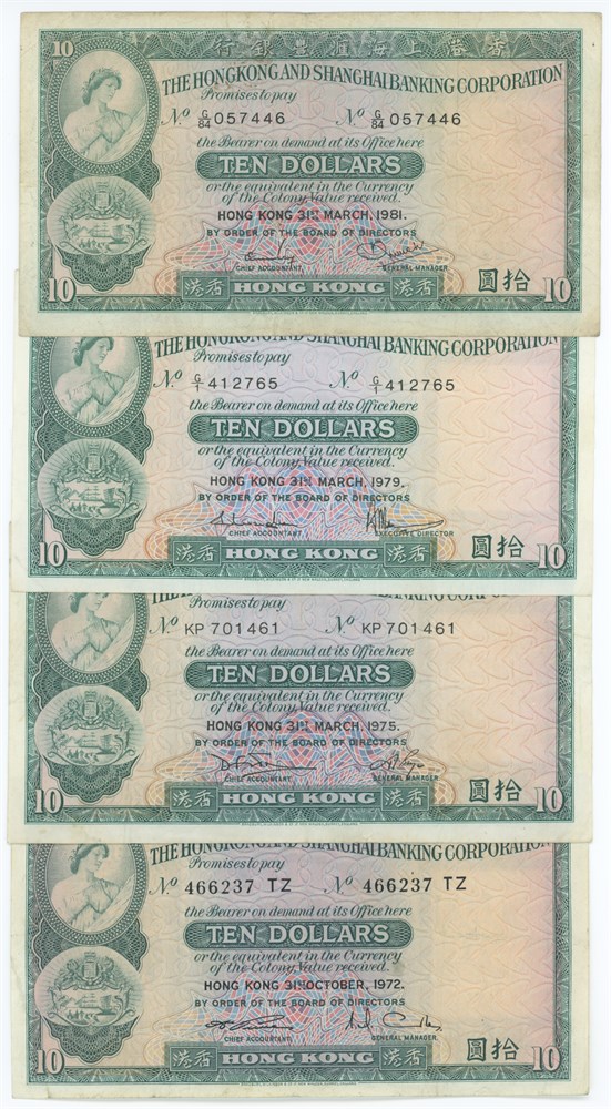 - 10 Dollars 1972-1981, 4 pcs. (4) (16811114)