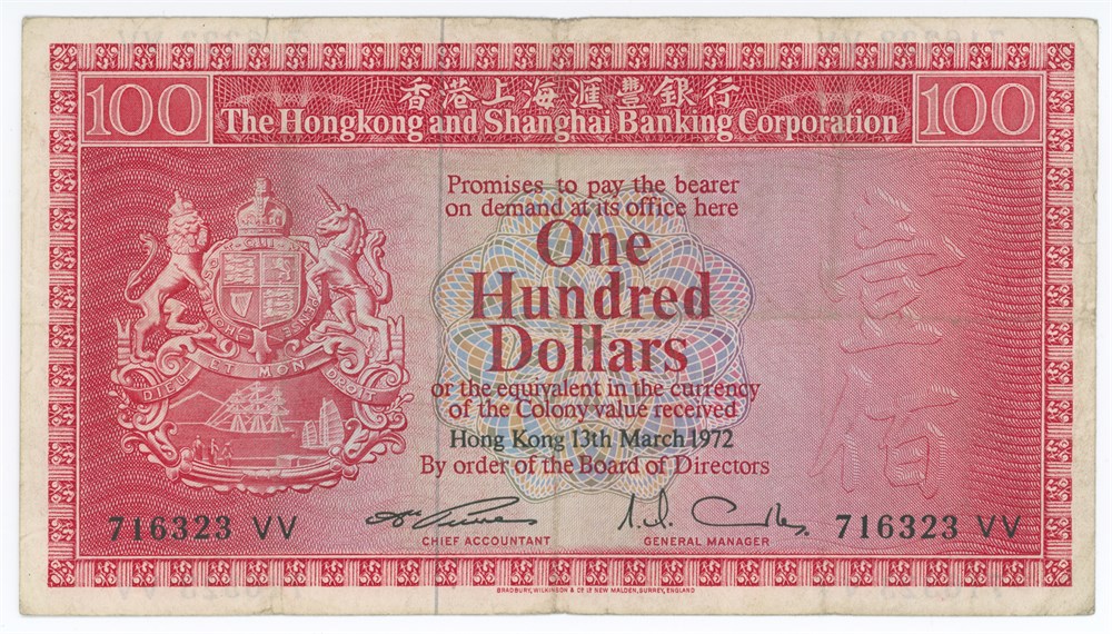 100 Dollars 1972, no. 716323 VV, light soiling.