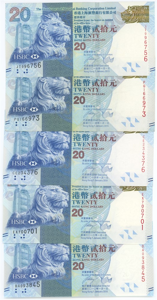 - 20 Dollars, 2010-2016, 5 pcs. (5) (16812524)