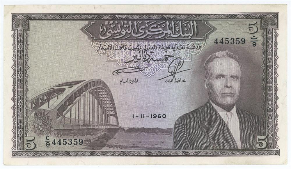 5 Dinars 1960, no. C/9 445359, Western numerals.