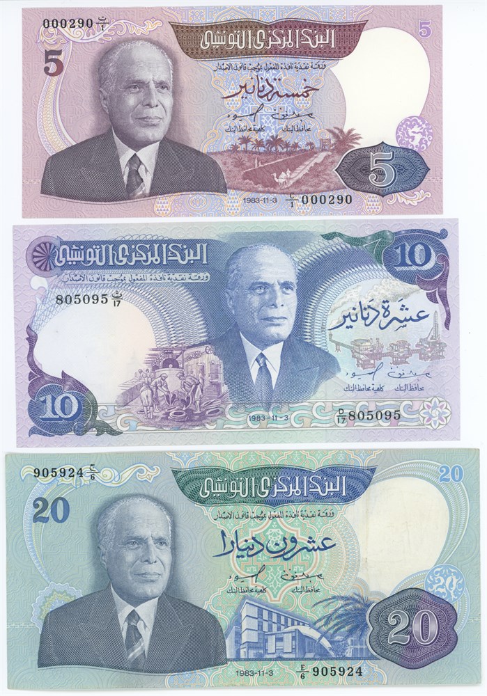 - 5, 10, 20 Dinars 1983. (3) (16818797)