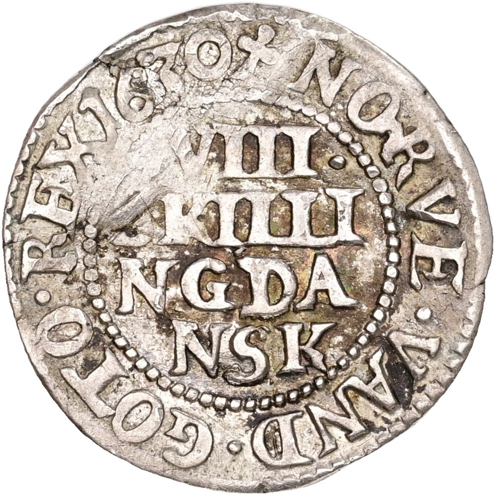8 skilling 1630, blankefejl, ridse.