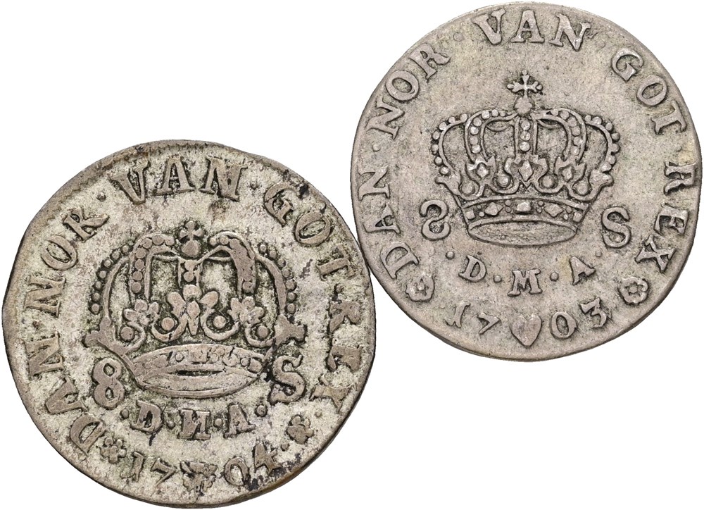 8 skilling 1703, 1704. (2)
