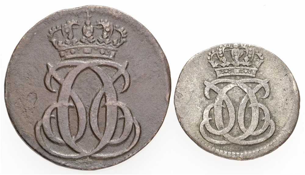 - 1/2 skilling 1745, skilling 1735. (2) (17009571)