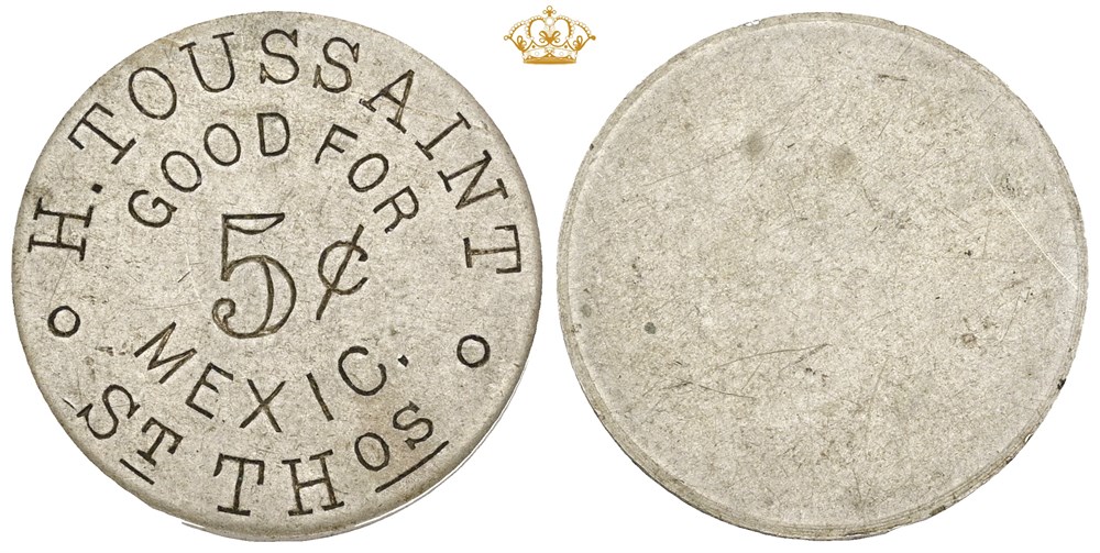 St. Thomas, H. Toussaint, 5 cents.