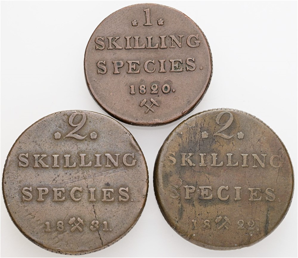 - Skilling 1820, 2 skilling 1822, 1831. (3) (17053938)