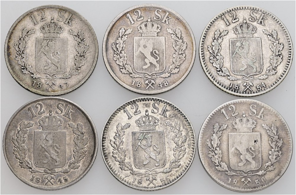 - 12 skilling 1845, 1847, 1848, 1850, 1854, 1856. (6) (17054747)