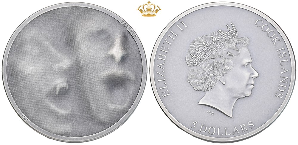 5 Dollars 2021, Trapped - Trap Attack, in original capsule and box of issue with certificate.