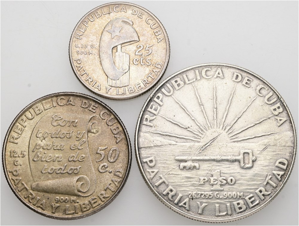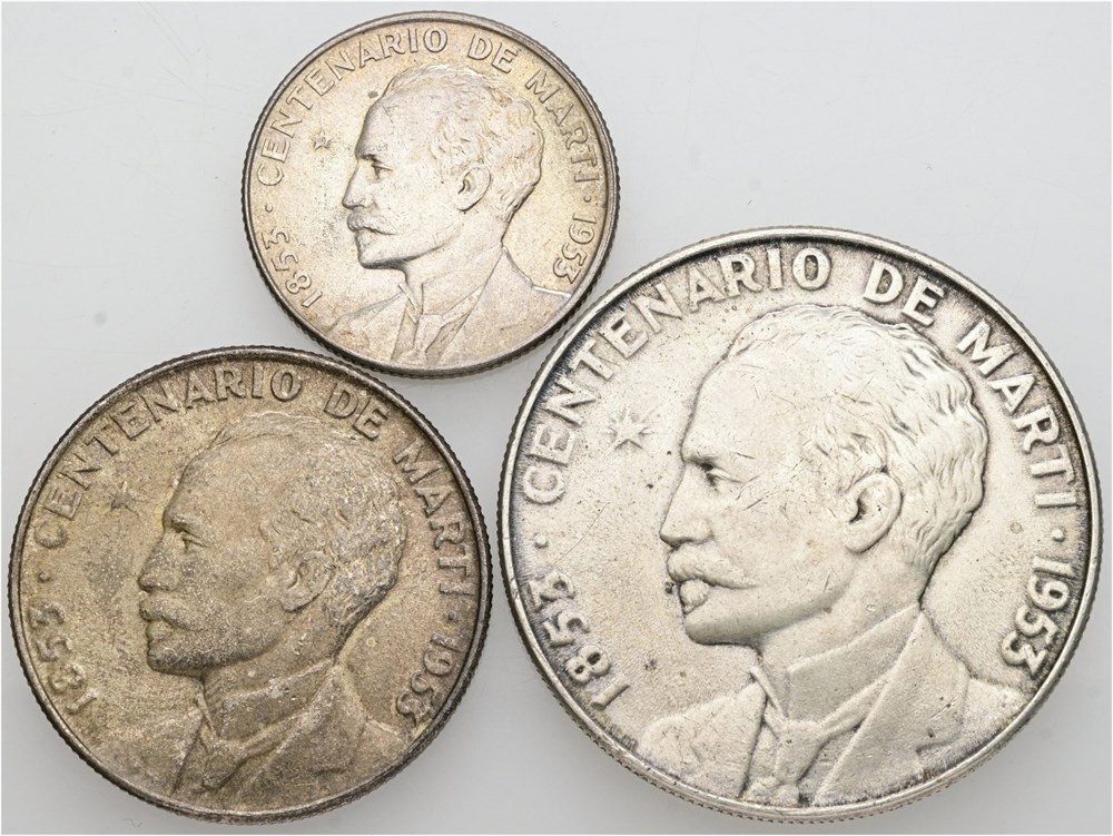 25 Centavos 1953; 50 Centavos 1953; Peso 1953. José Martí. (3)