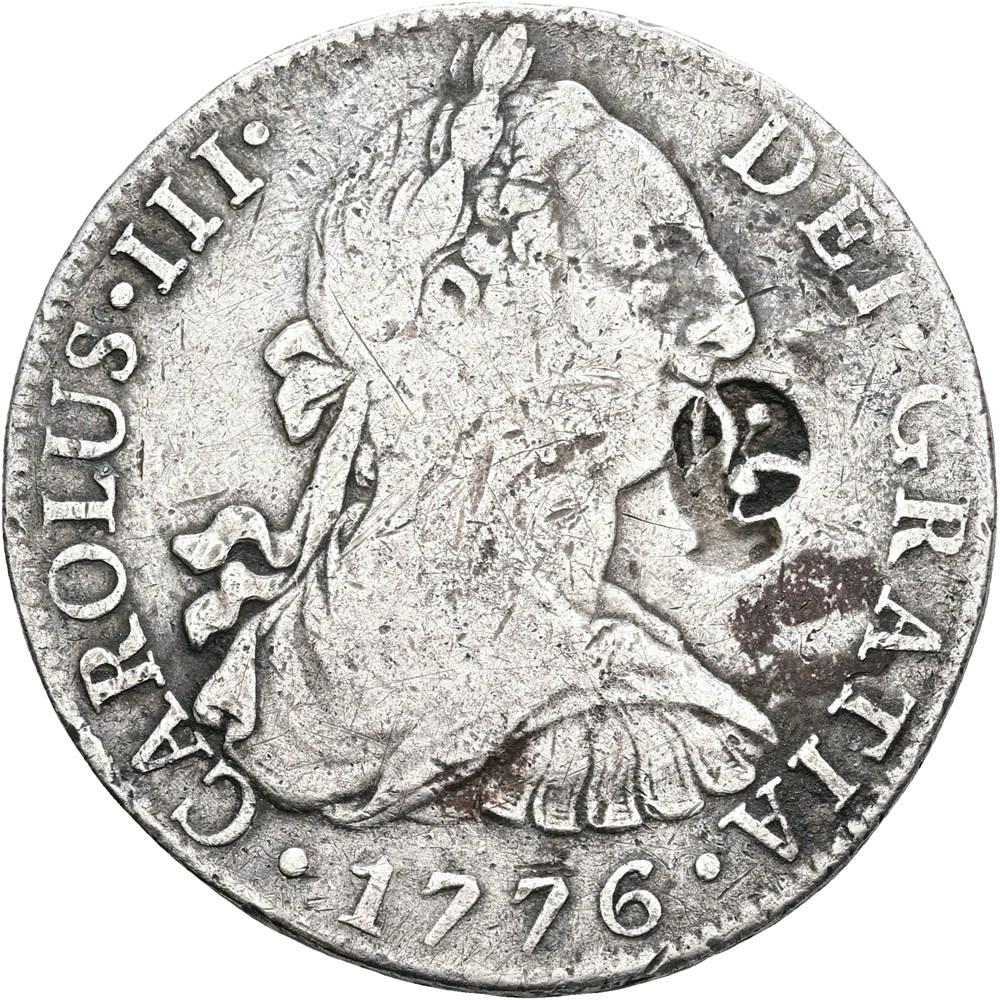 Netherlands East Indies, Java, Ducaton (Taler / Daalder) ND (c. 1772-1789), countermark "Jawa" in Arabic script applied to the obverse of Mexico, Carlos III (1759-1788), 8 Reales 1776 Mo FM, Mexico mint, light corr.