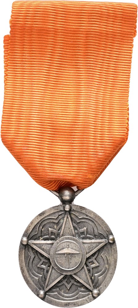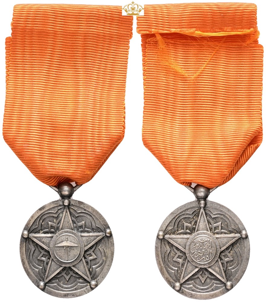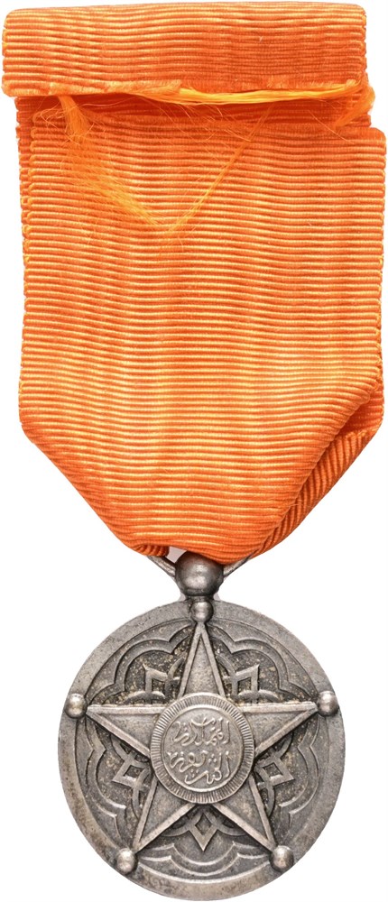 Dahir / Brevet Medal, silvered Ae, 30 mm, with ribbon.