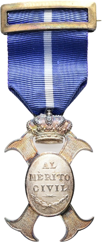 Order of Civil Merit, 'Al Mérito Civil', probably silvered Ae, 48x33 mm, with ribbon.