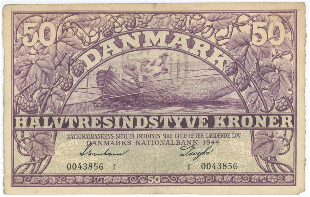 50 kroner 1944 f, nr. 0043856, Svendsen / Pugh.