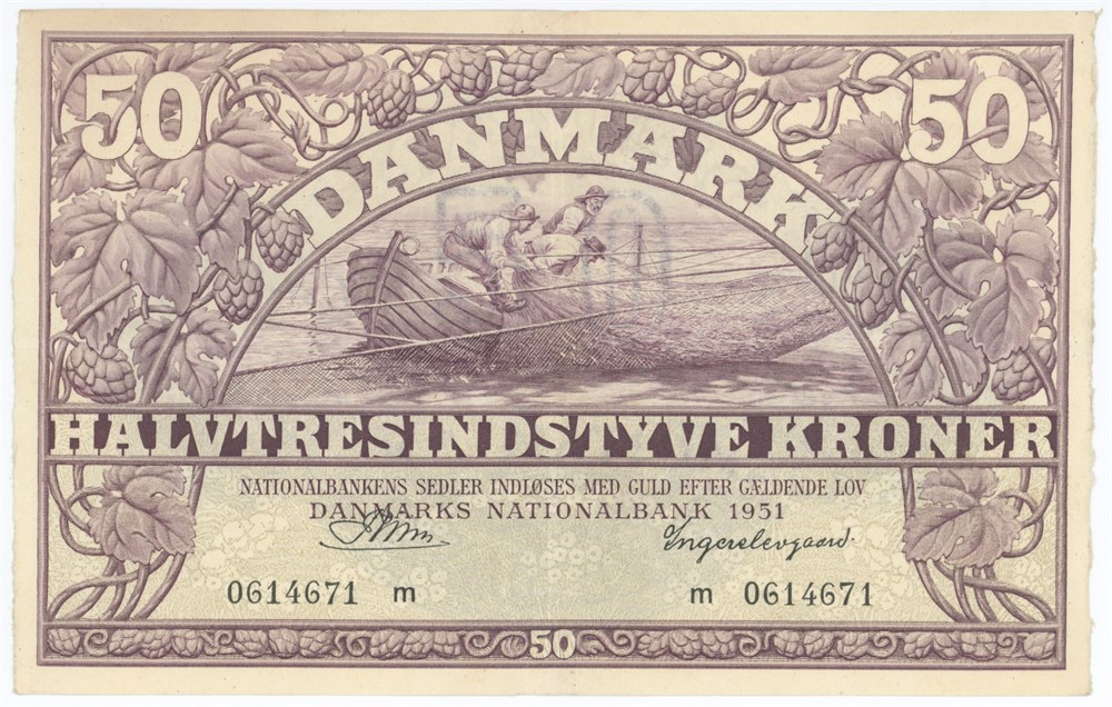 50 kroner 1951 m, nr. 0614671, Riim / Ingerslevgaard