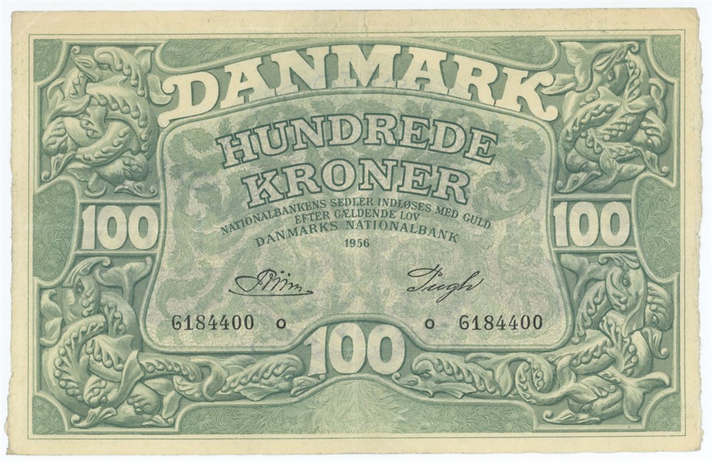 - 100 kroner 1956 o, nr. 6184400, Riim / Pugh (17110490)