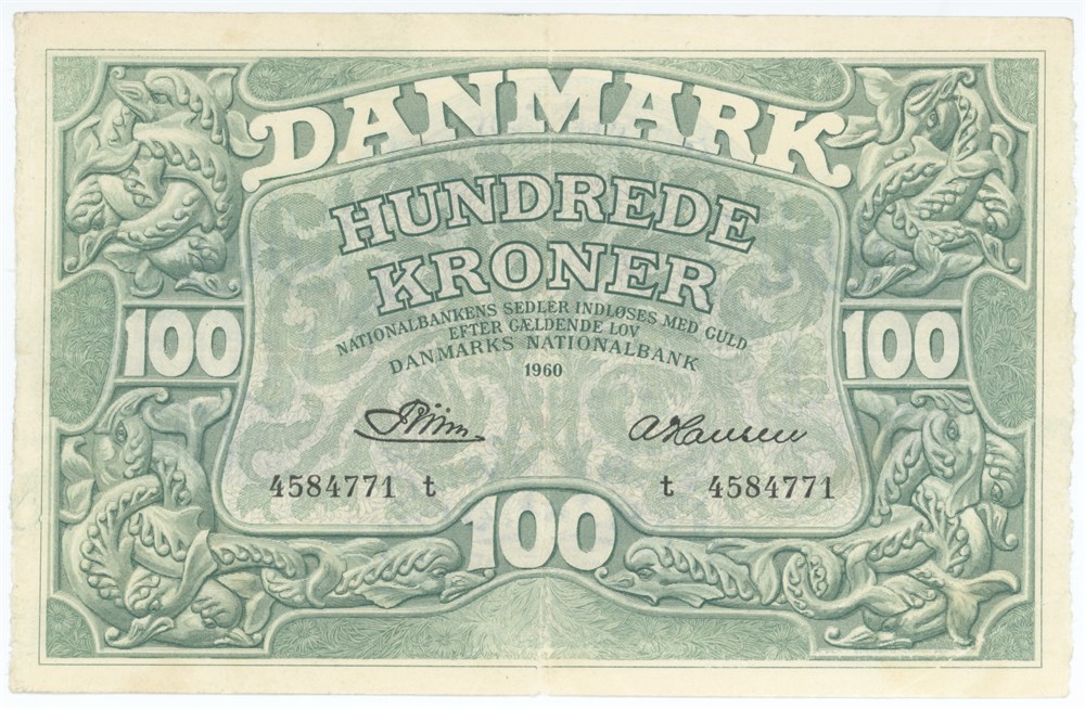 - 100 kroner 1960 t, nr. 4584771, Riim / A. Hansen (17111195)