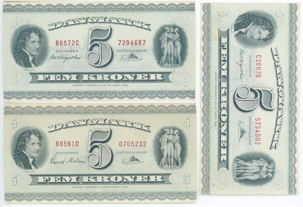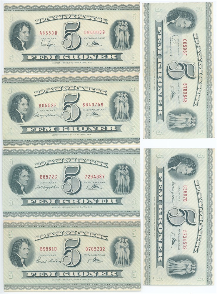 5 kroner 1955 (2), 1957, 1958, 1959, 1960. (6)