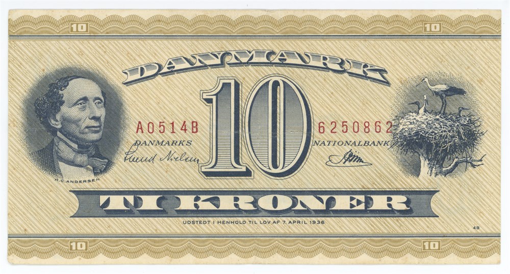 10 kroner 1951 A0, nr. 6250862, Svend Nielsen / Riim