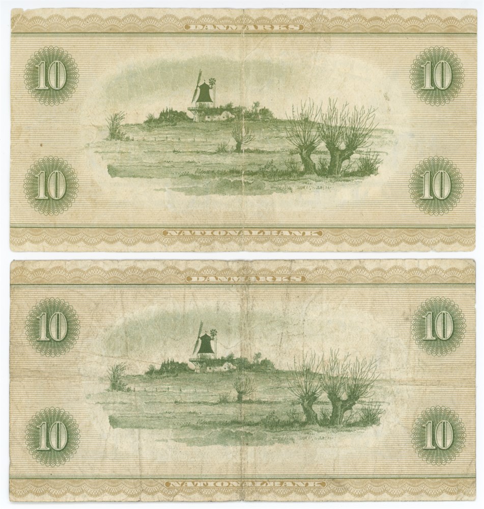 10 kroner 1952 A5 samt 1952 10 kroner A7, Ove Jepsen / Riim