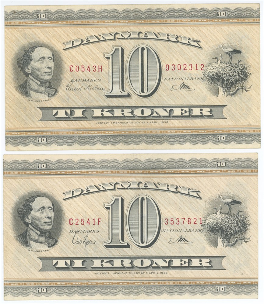 10 kroner 1954 C0, 10 kroner 1954 C2. (2)