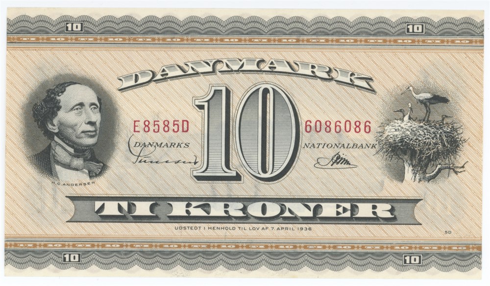 - 10 kroner 1958 E8, nr. 6086086, Sunesen / Riim (17113503)