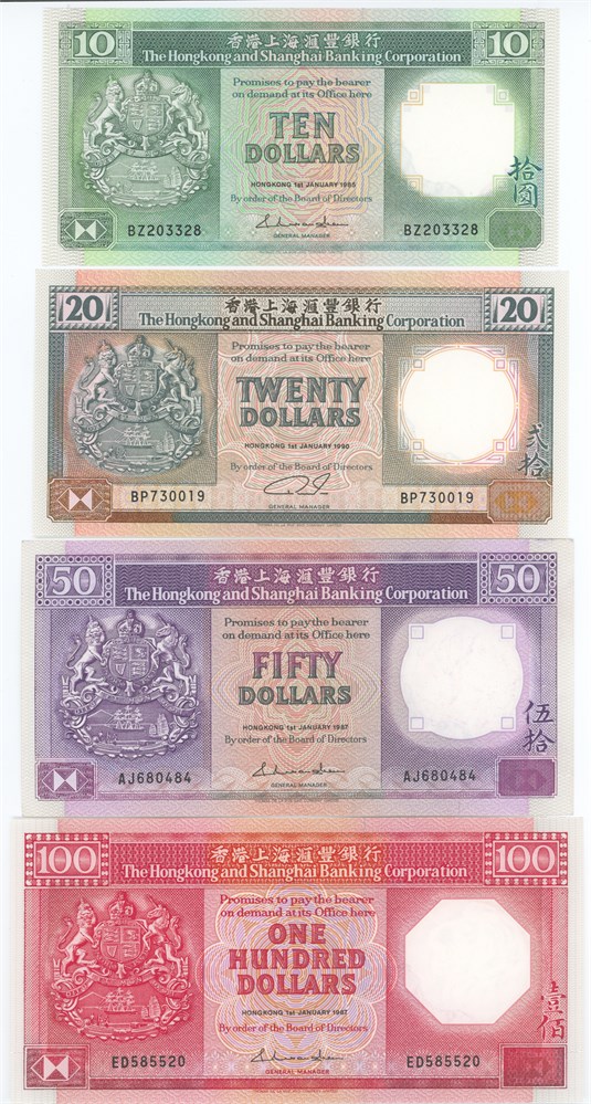 Collection, 10-, 20-, 50-, 100 Dollars, as well as additional others. (8)
