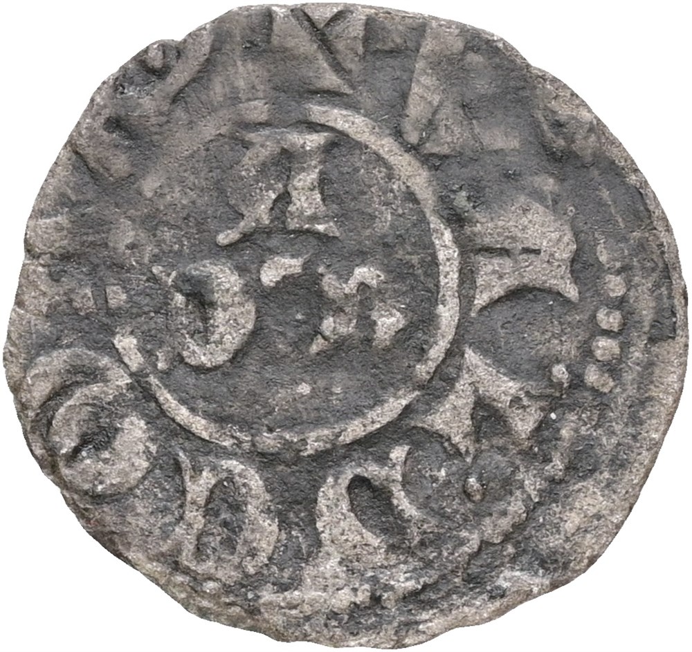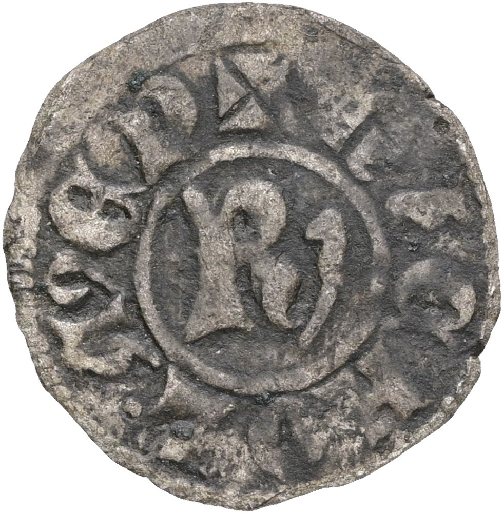Penning, Roskilde. Den spændende type, der bærer den berømte Roskildebisp Niels Stigsens navn og titel i reversens omskrift.