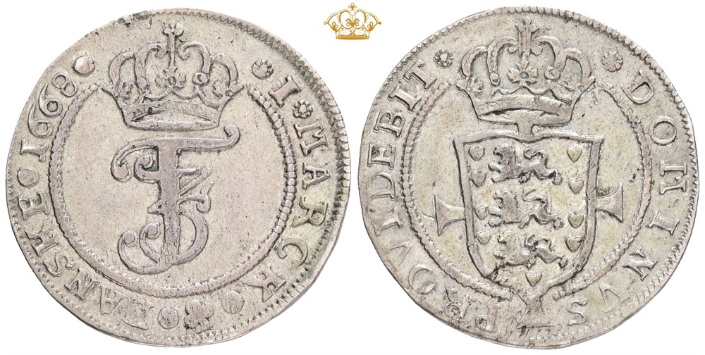 Mark 1668, pænt eksemplar af denne ualmindelige etårstalstype.