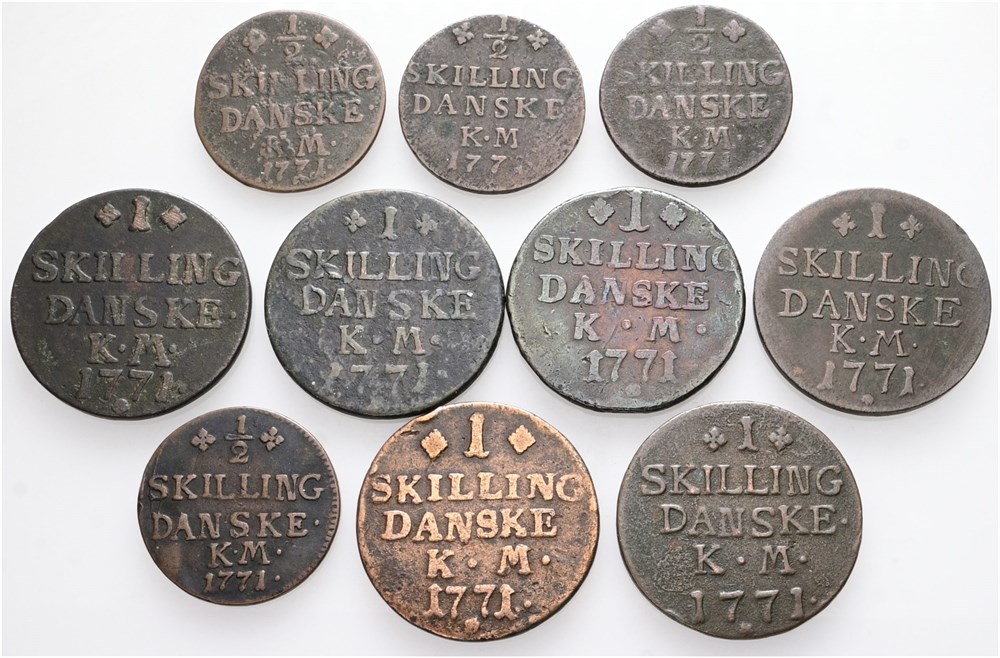 1/2 skilling 1771 (4); skilling 1771 (6). (10)