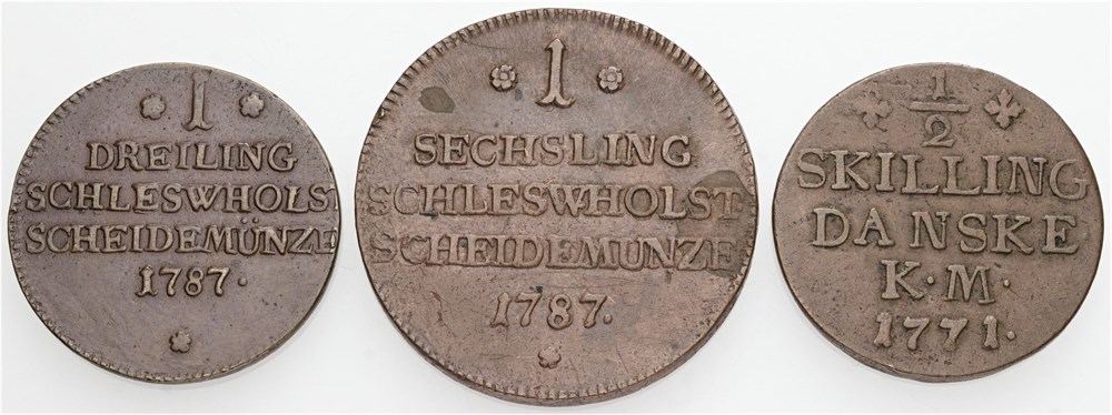 - 1/2 skilling 1771; dreiling 1787; sechsling 1787. (3) (17308626)