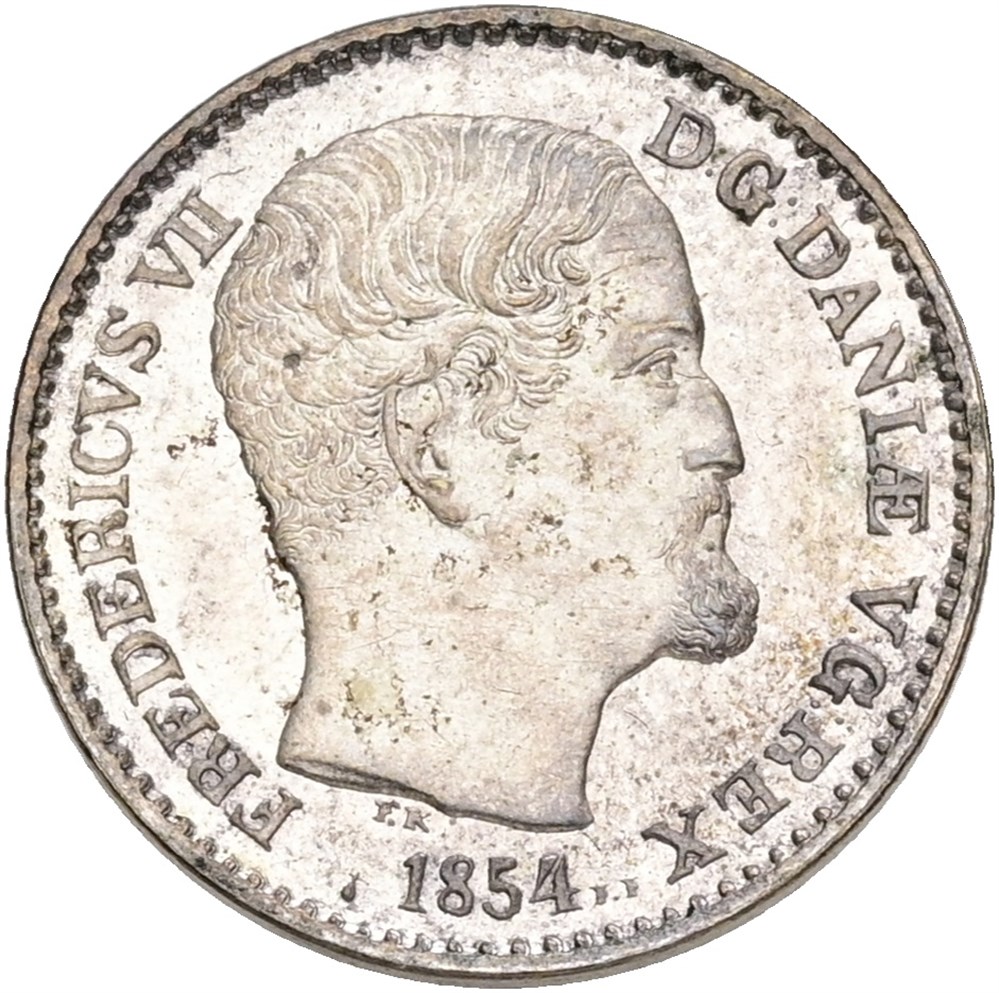 4 skilling 1854, enkelte håndteringsspor.