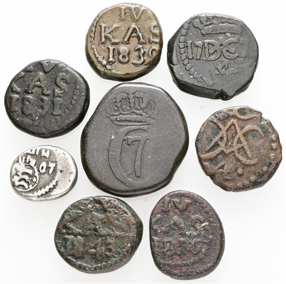 Samling, 8 stk inkl. pæn 4 kas 1838 samt royalin 1807. (8)
