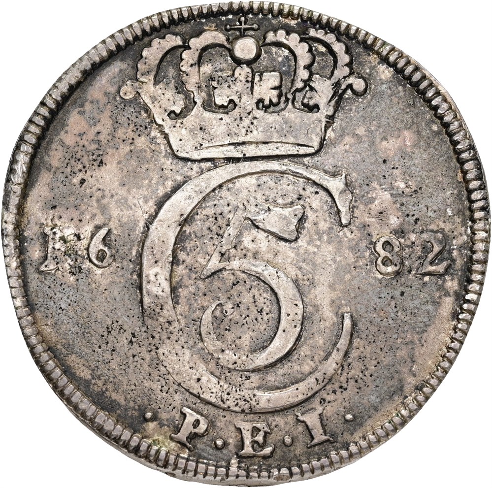 4 mark / krone 1682, monteringsspor på rand.