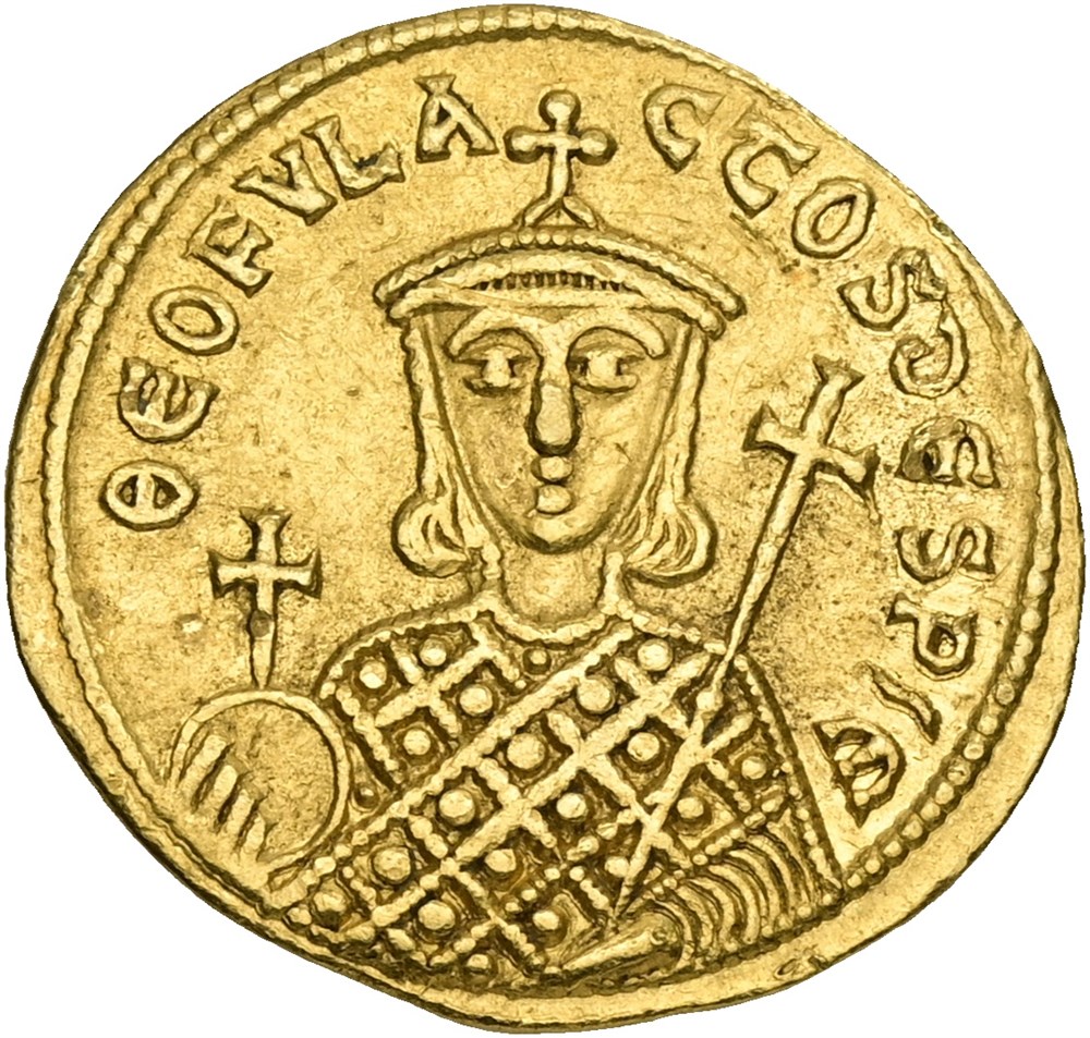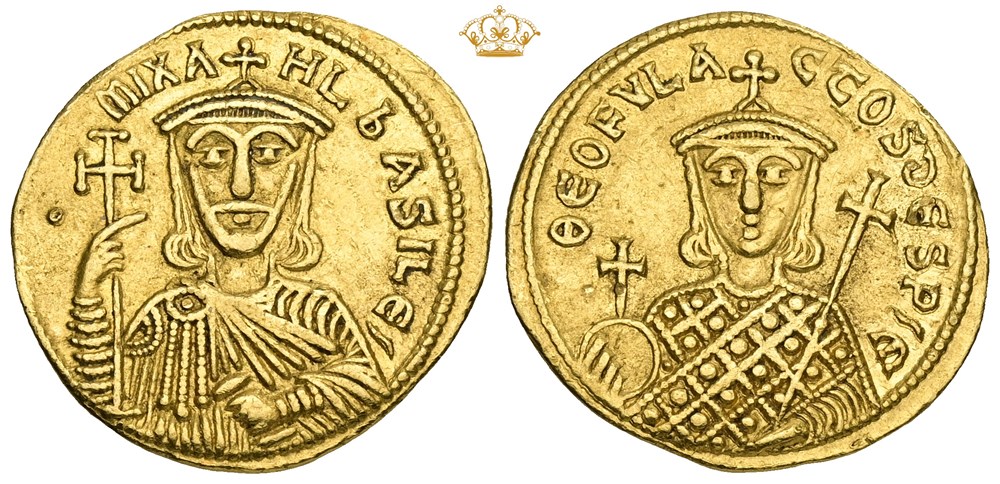 Solidus, Constantinople. Crowned bust of Michael holding cross and akakia / crowned bust of Theophylactus holding globe and sceptre. Very rare.