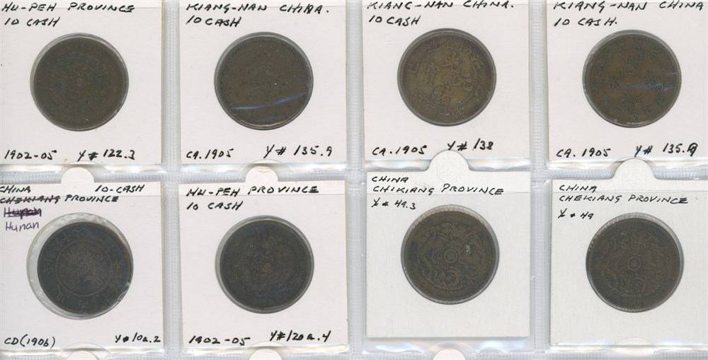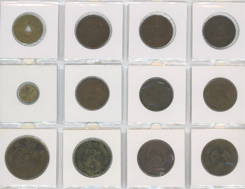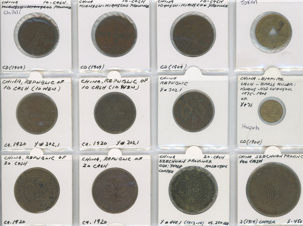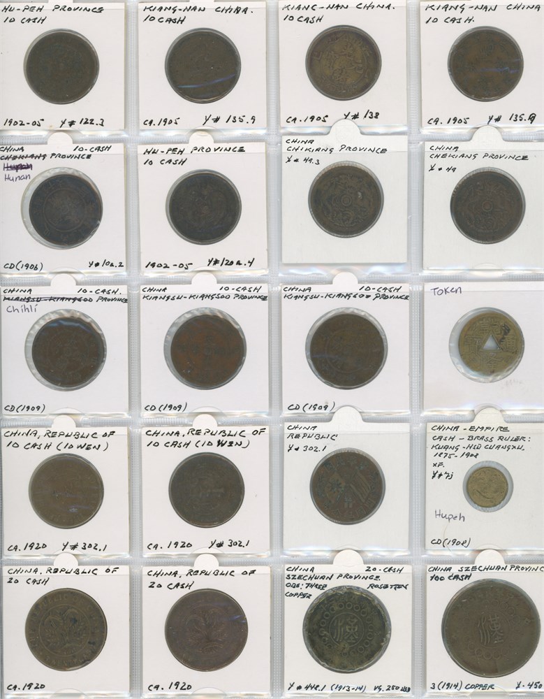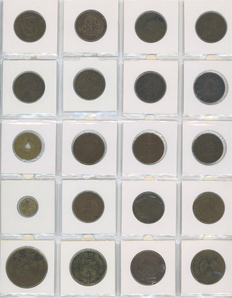 Collection 1, 10, 20 and 100 Cash as well as token, 20th century, incl. Chekiang, Chihli, Hunan, Hupeh, and Kiangnan. In total 20 pcs.