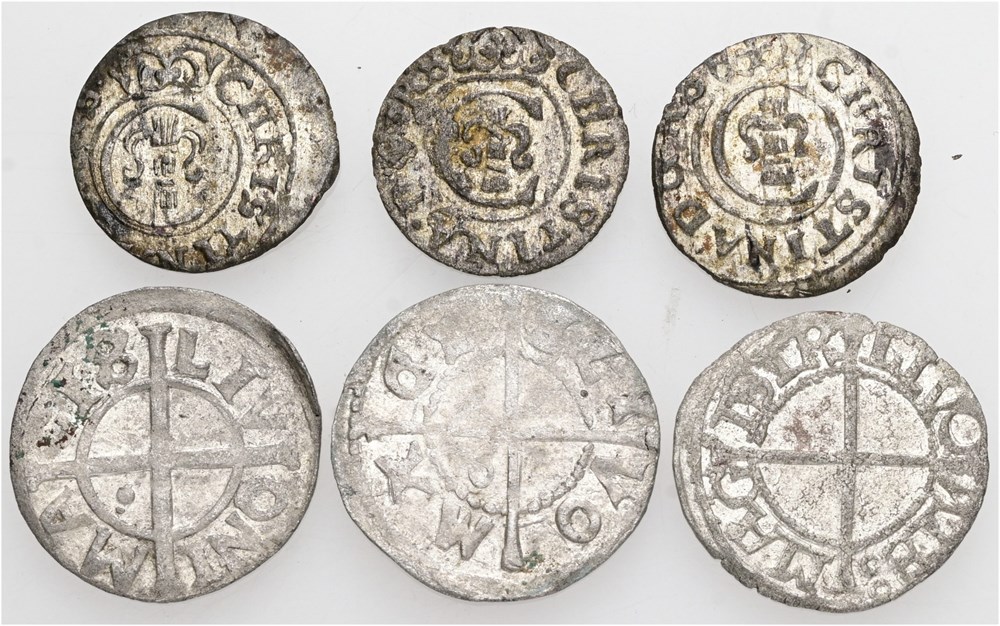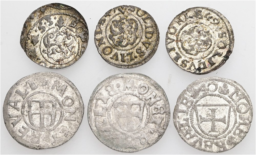 Collection incl. Livonian Order, Reval, Schilling ND (1532-1534), 1540; Swedish Livonia, Riga, Solidus 1647?, 1649, 1653. In total 6 pcs.