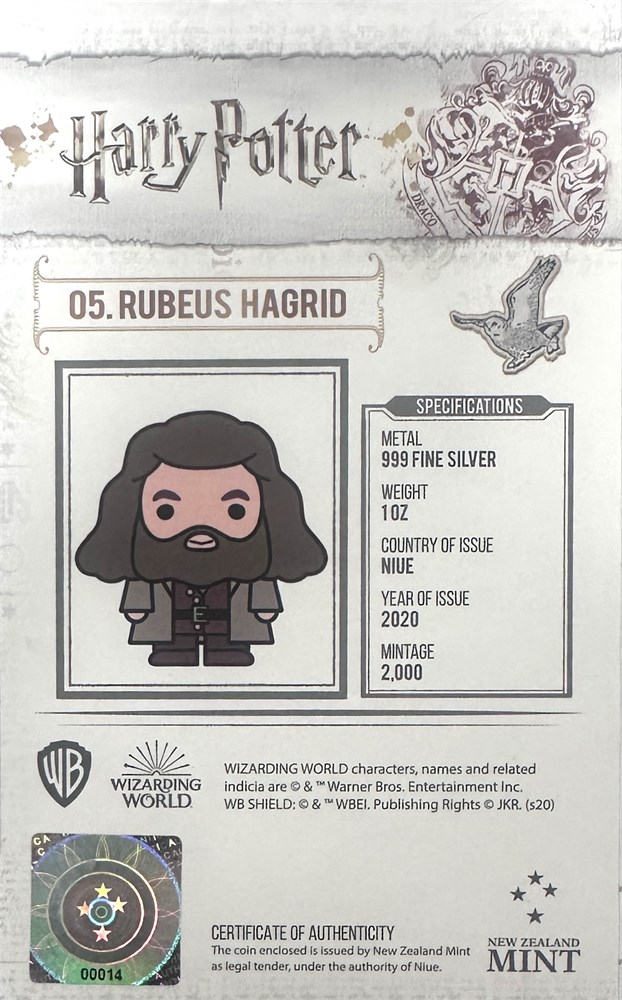 2 Dollars 2020, Rubeus Hagrid, Harry Potter, Ag (999/1000, 1 oz, in original packaging.