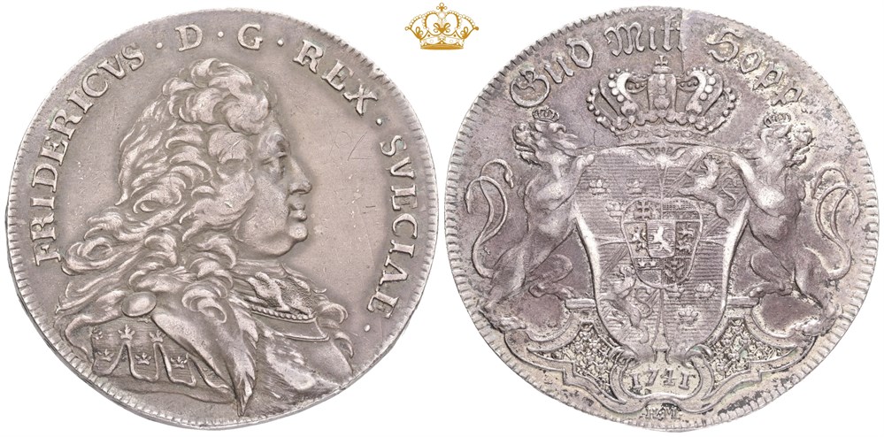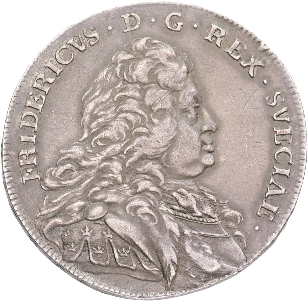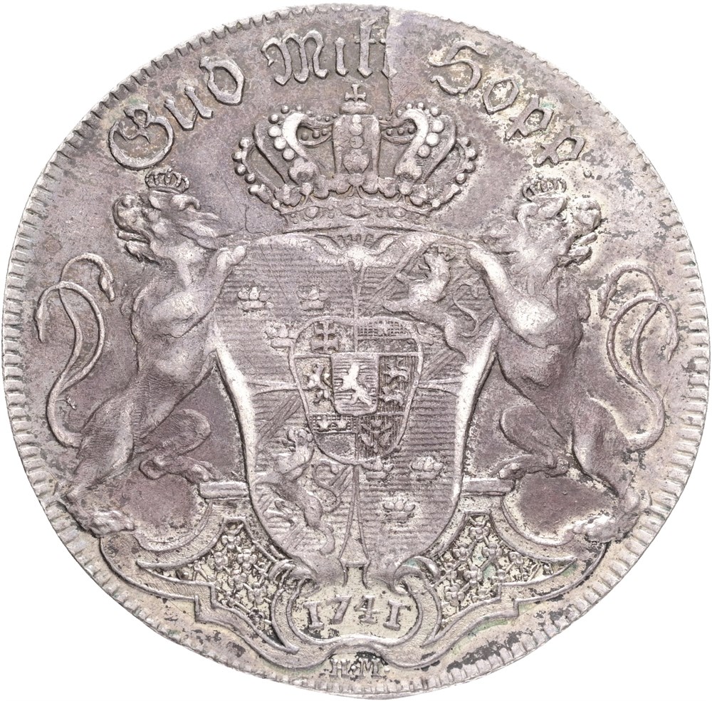 Riksdaler 1741, uden nitter på harnesk, ejermærke, pæn patina.