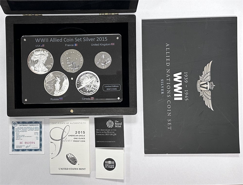 - "WWII Allied Coin Set Silver 2015", set with five coins. (17398135)