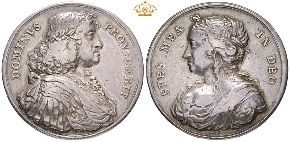 Frederik III og Sofie Amalie af Braunschweig-Lüneburg, u. år (ca. 1659), af Eric Parise, Ag, 41 mm.