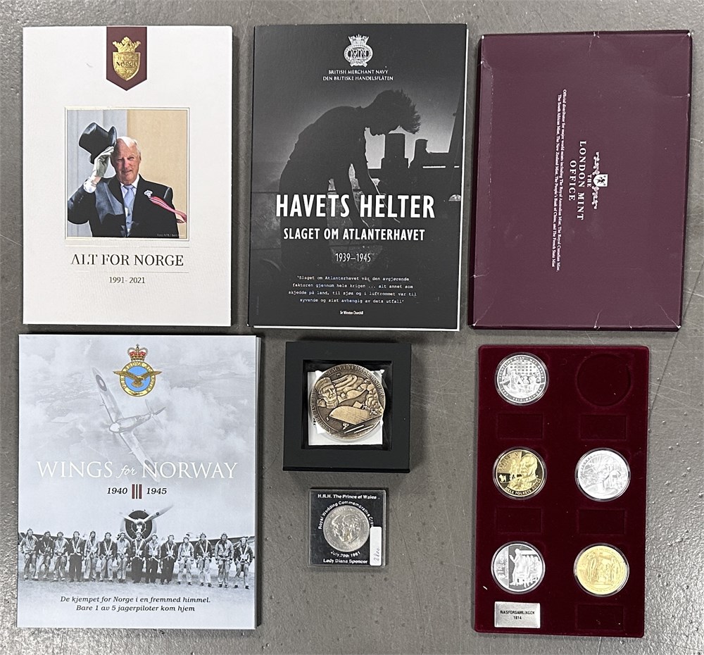 Riksforsamlingen, 1814-2014, Ag (999/1000), 20 g (3); øvrige medaljer, Ae forgyldt Ae (11); samt England, 25 Pence 1981. (15)
