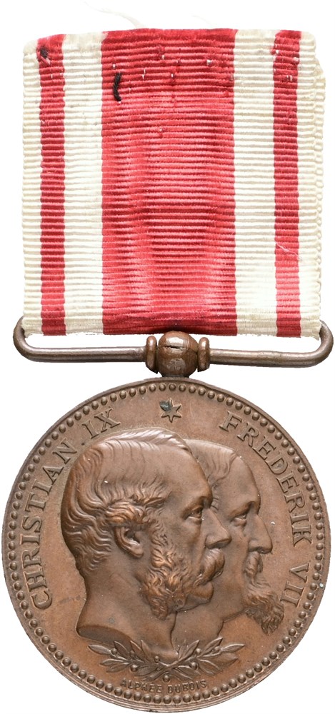 Medalje for deltagelse i krigene 1848-1850 og 1864, af Alphée Dubois, Ae, 31 mm - med originalt, beskadiget bånd.