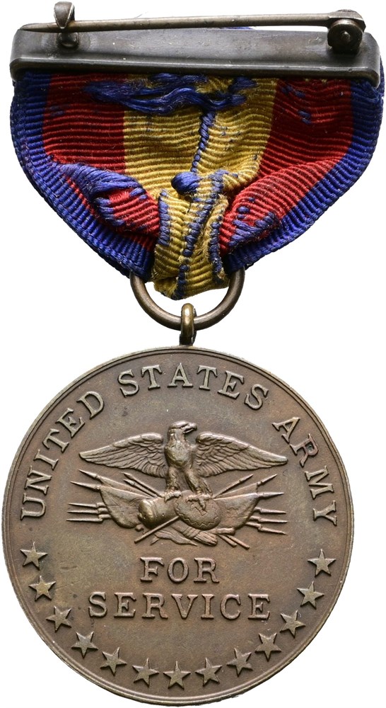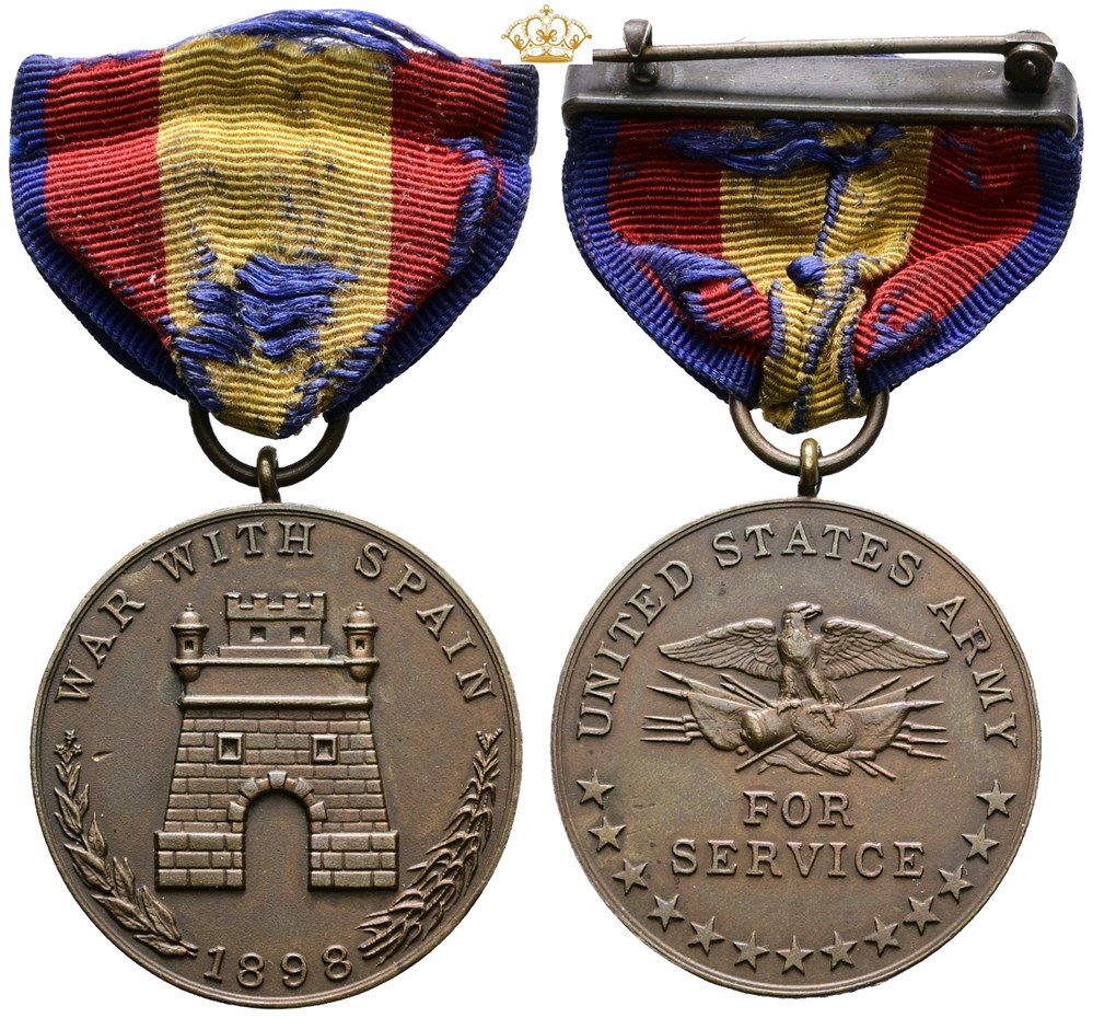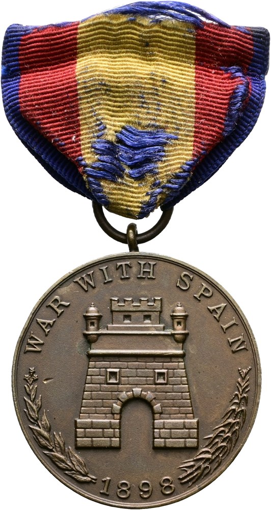 Spanish Campaign Medal, "War with Spain 1898 / United States Army, for service", Ae, 33 mm, "No. 4002" marked into the edge - with ribbon.